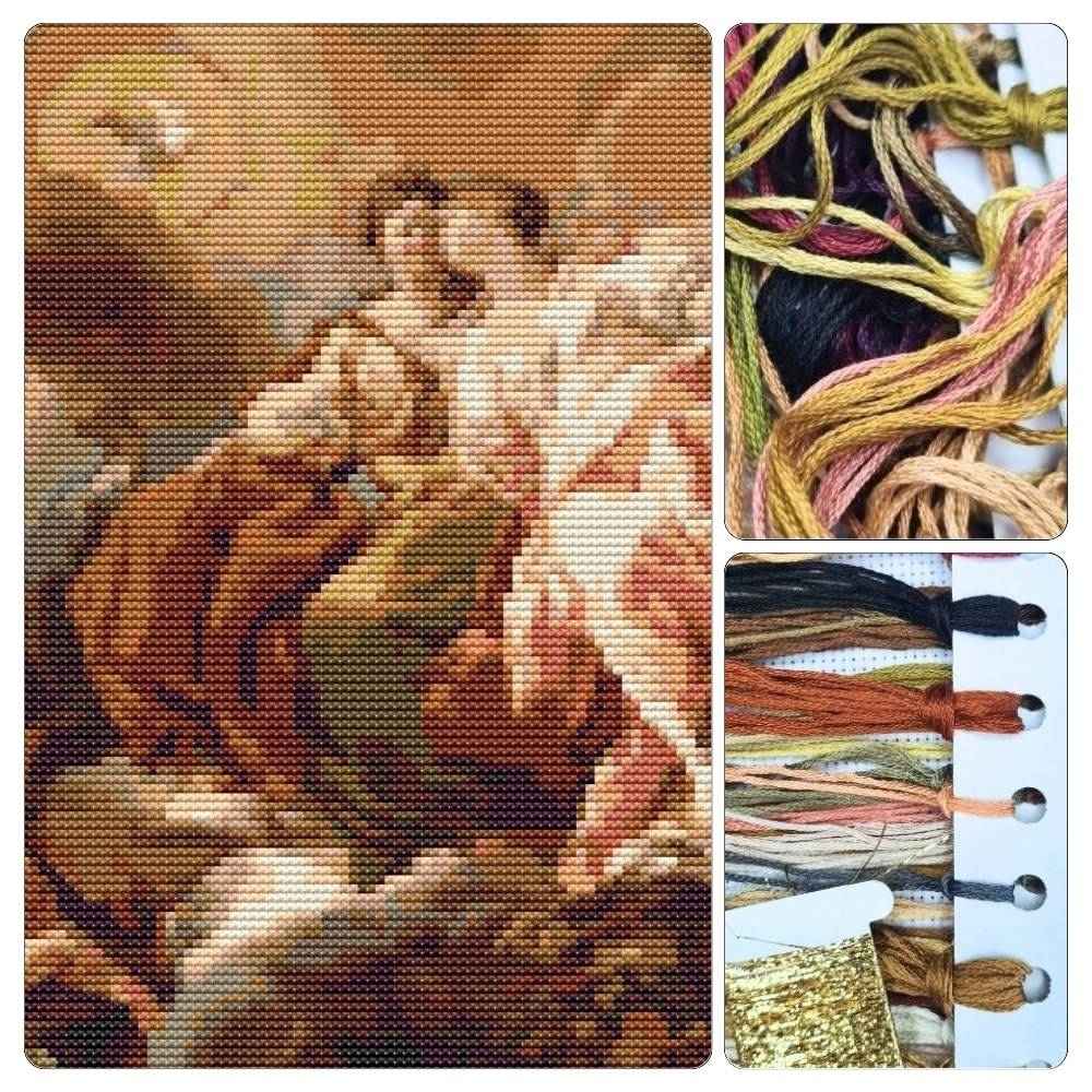 Justice and Peace Cross Stitch Kit, inspired by Corrado Giaquinto’s famous 18th-century painting features the allegorical figures of justice and peace.