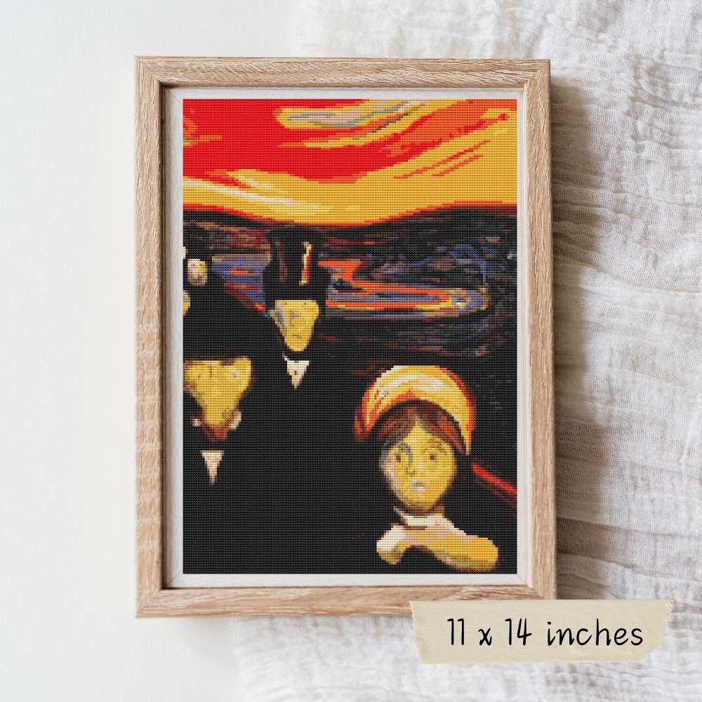 Why scream when you can stitch? The Anxiety cross stitch kit by Edvard Munch lets you turn existential dread into wall art. Moody skies, tense faces, and a whole lot of vibes—this kit proves that even angst can look fabulous in thread.