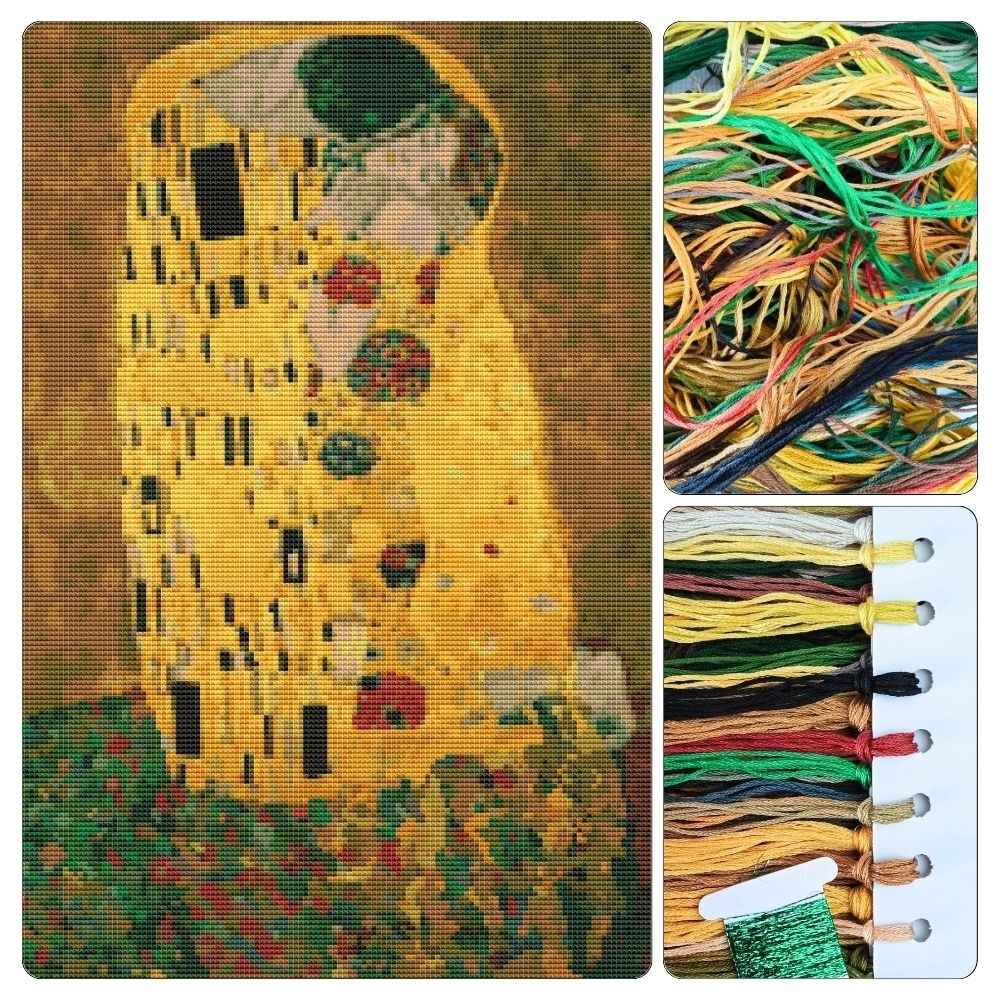 The Kiss Cross Stitch Kit by Gustav Klimt is a stunning celebration of romance, wrapped in a cascade of shimmering gold and geometric patterns. The tender embrace, surrounded by lush colors and radiant motifs, brings a sense of passion and intimacy to any space.