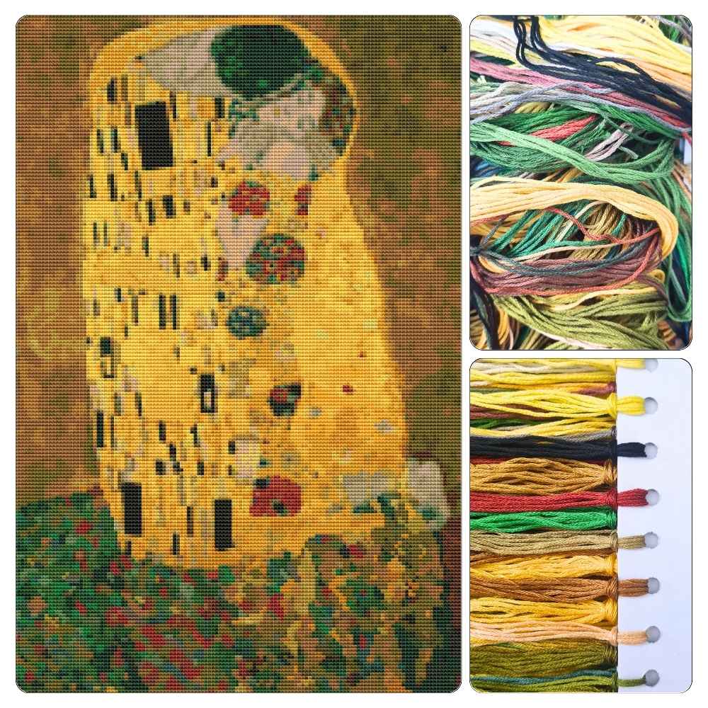 The Kiss Cross Stitch Kit by Gustav Klimt is a stunning celebration of romance, wrapped in a cascade of shimmering gold and geometric patterns. The tender embrace, surrounded by lush colors and radiant motifs, brings a sense of passion and intimacy to any space.