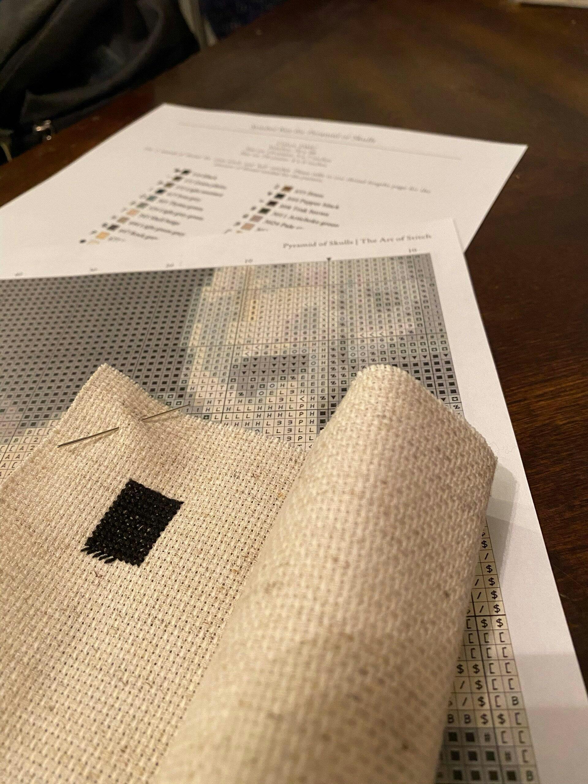 Stitch a Cézanne masterpiece with Pyramid of Skulls. This easy cross stitch pattern is beginner-friendly and ideal for those who love art with a bold, gothic twist.
